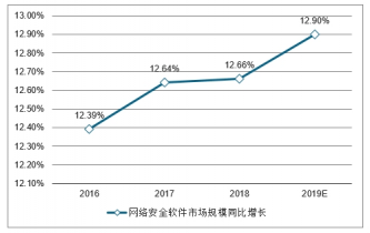 2016-2019年中國網絡安全軟件市場規模同比增長走勢