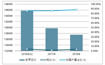 全球稀土冶煉分離產(chǎn)品產(chǎn)量及同比、中國產(chǎn)量占比情況(噸, REO)