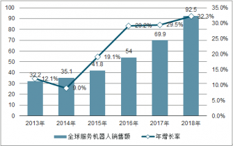 2013-2018年全球服務(wù)機(jī)器人市場(chǎng)規(guī)模增長(zhǎng)趨勢(shì)