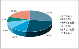 2019年我國家用服務(wù)機(jī)器人、醫(yī)療服務(wù)機(jī)器人和公共服務(wù)機(jī)器人市場(chǎng)規(guī)模分別為8.9億美元、5.1億美元和4.4億美元,家用服務(wù)機(jī)器人和公共服務(wù)機(jī)器人市場(chǎng)增速相對(duì)領(lǐng)先。從細(xì)分領(lǐng)域來看,家務(wù)機(jī)器人占主導(dǎo)位置,市場(chǎng)份額為27.4%,其次是物流機(jī)器人,市場(chǎng)份額為24.9%。隨著人口老齡化腳步加快,以及醫(yī)療、教育需求的持續(xù)旺盛,康復(fù)醫(yī)療及教育等領(lǐng)域存在市場(chǎng)潛力和發(fā)展空間。