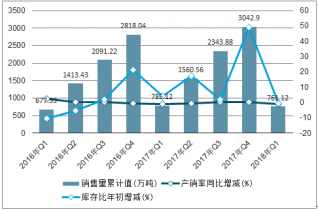 2016-2018Q1中國燒堿銷量統(tǒng)計