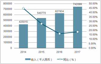 2014-2017年物業(yè)百強收入均值及增速