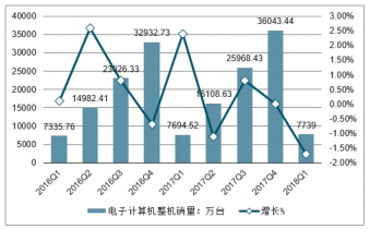 2019年Q1中國電子計算機整機銷量累計達7739.2萬臺,產(chǎn)銷率同比下降1.7%,庫存比年初增長37.1%;2017年中國電子計算機整機銷量累計達36043.44萬臺,產(chǎn)銷率同比增長0%,庫存比年初增長25.7%。2019年Q2中國電子計算機整機銷量累計達16408.85萬臺,產(chǎn)銷率同比下降1.6%,庫存比年初增長1.1%;