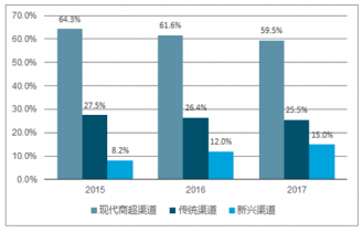 2015-2017年衛(wèi)生巾和護(hù)墊各渠道銷售占比
