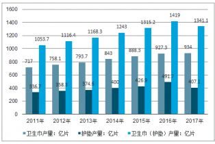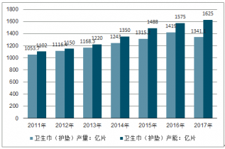 2011-2017年衛(wèi)生巾產(chǎn)能產(chǎn)量統(tǒng)計(jì)