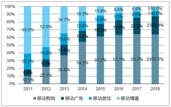 2011-2018年中國(guó)移動(dòng)互聯(lián)網(wǎng)細(xì)分行業(yè)結(jié)構(gòu)占比