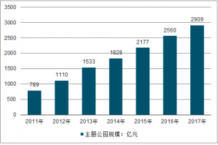 2011-2017年我國主題公園行業(yè)銷售規(guī)模