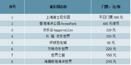 2019年國內(nèi)部分主題公園門票情況