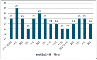 2016-2017年中國新聞紙單月產(chǎn)量分析