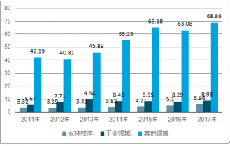 2011-2017年中國通航產(chǎn)業(yè)飛行作業(yè)時間細(xì)分情況
