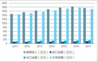 2017年我國(guó)洗滌用品行業(yè)銷售收入約1758.44億元,進(jìn)口金額約117.52億元,出口金額約163.03億元,行業(yè)表觀銷售市場(chǎng)規(guī)模約1712.94億元。近幾年我國(guó)洗滌用品行業(yè)市場(chǎng)規(guī)模情況如下圖所示:
