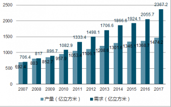 2007-2017年我國天然氣供需平衡走勢(shì)