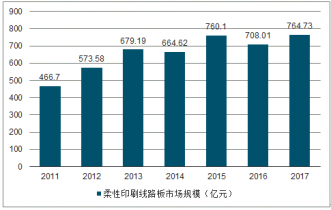 2011-2017年我國(guó)柔性印刷電路板規(guī)模統(tǒng)計(jì)圖