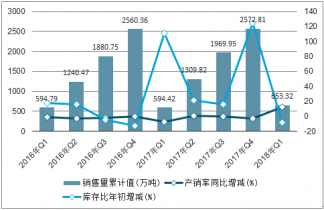 2016-2018Q1中國純堿(碳酸鈉)銷量統(tǒng)計