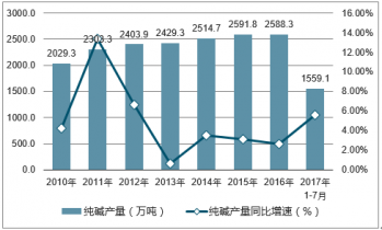 2010-2017年中國純堿產量及增速
