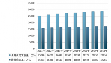 2011-2018年全國農(nóng)民工總量走勢圖