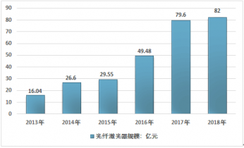 2013-2018年中國(guó)光纖激光器行業(yè)市場(chǎng)規(guī)模及增速