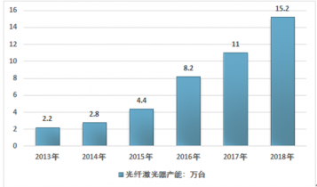 2013-2018年中國(guó)光纖激光器行業(yè)產(chǎn)能情況