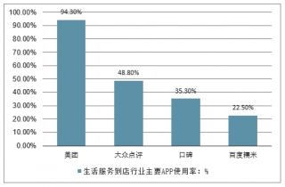 從用戶使用情況來看,美團使用率顯著高于其它APP,而且其它APP間的使用率差距也十分明顯,第二位的大眾點評有近五成的使用率,而第二梯隊的口碑和百度糯米為百分之二三十的使用率。
