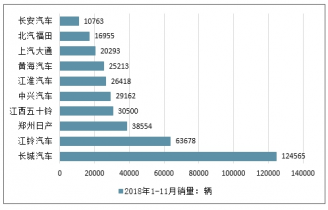 2018年1-11月中國皮卡分品牌銷量TOP10(單位:輛)