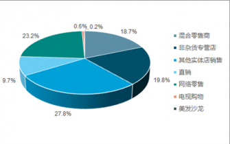 2017年,非實體店銷售(直銷、網(wǎng)絡(luò)零售、電視購物)比重已達(dá)到33.5%,其中網(wǎng)絡(luò)零售比重上升至23.2%。