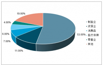 中國(guó)機(jī)器人(含無人機(jī))及相關(guān)服務(wù)的消費(fèi)額持續(xù)高速增長(zhǎng),預(yù)計(jì)到2022年將達(dá)到770億美元,2018-2022年復(fù)合年增長(zhǎng)率達(dá)到26.3%。其中,中國(guó)是全球最大的機(jī)器人市場(chǎng),預(yù)計(jì)到2022年將占全球總量的38%以上。在2022年中國(guó)機(jī)器人(含無人機(jī))市場(chǎng)分布方面,預(yù)計(jì)制造業(yè)占比最高,占比為53%;其次為資源業(yè),占比為11%;排名第三的是消費(fèi)品行業(yè),占比為7%;其后分別為醫(yī)療保健、零售業(yè),占比分別為6%、4%。