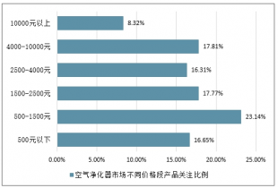 2018Q1年中國(guó)空氣凈化器市場(chǎng)不同價(jià)格段產(chǎn)品關(guān)注比例情況