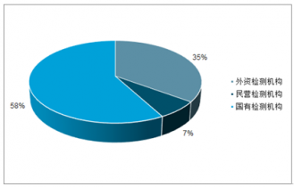 近年來我國食品安全檢測行業(yè)中,國有檢測機(jī)構(gòu)營業(yè)收入占到全行業(yè)營業(yè)收入的58%,民營機(jī)構(gòu)占到7%,國內(nèi)檢測機(jī)構(gòu)合計(jì)比重達(dá)65%;外資檢測機(jī)構(gòu)占35%。