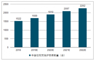 2018年中國垃圾焚燒爐安裝數(shù)量達(dá)到1,522臺(tái),未來五年(2018-2022)年均復(fù)合增長率約為10.41%,2022年垃圾焚燒爐安裝數(shù)量將達(dá)到2,262臺(tái)。