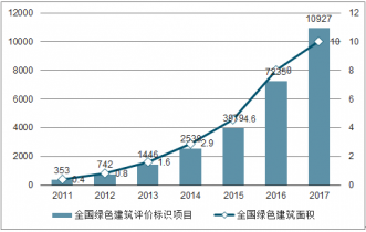 2011-2017年中國綠色建筑項目發(fā)展情況