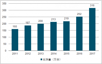 2011-2017年中國(guó)投影機(jī)市場(chǎng)出貨量及增長(zhǎng)情況(萬(wàn)臺(tái))