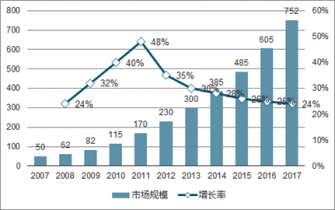 2007-2017年中國(guó)RFID行業(yè)市場(chǎng)規(guī)模及增長(zhǎng)率