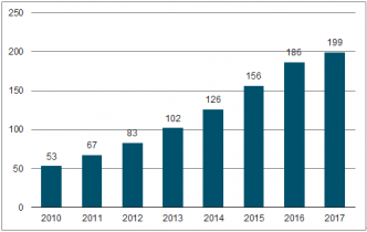 2010-2017年中國醫(yī)用內(nèi)窺鏡市場規(guī)模