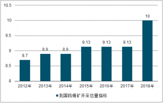 2012-2018年我國鎢精礦開采總量指標統(tǒng)計情況