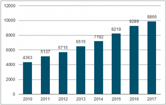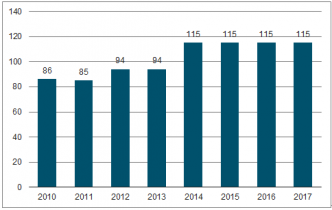 2010-2017年國(guó)家大學(xué)科技園數(shù)量統(tǒng)計(jì)