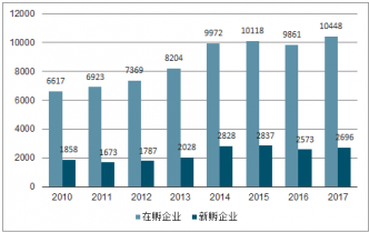 2010-2017年國(guó)家大學(xué)科技園在孵企業(yè)及新孵企業(yè)