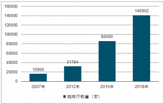 中國咖啡行業(yè)的高速發(fā)展帶動了咖啡連鎖行業(yè),例如咖啡店。我國咖啡廳數量增長增長十分迅速,2007年約有15906家,到2012年,快速增長到31794家, 2018年咖啡廳數量在14000家左右。