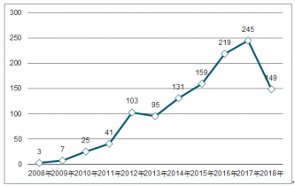 從公開專利數(shù)量來看,2008-2017年,我國海上風(fēng)電專利公開數(shù)量總體上呈趨勢。2017年,我國海上風(fēng)電專利公開數(shù)量為245項,達到近年來最大值;截至2019年6月,專利公開數(shù)量為149項。