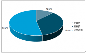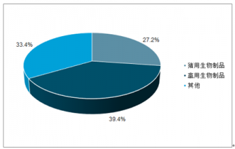 更具體的,在獸用化藥市場(chǎng)中,原料藥和化藥試劑分別占化藥銷售額的34.6%和53.2%,是化藥的主要產(chǎn)品,中獸藥市場(chǎng)份額相對(duì)較小;而在獸用生物制品市場(chǎng)中,豬用生物制品和禽用生物制品是主要的產(chǎn)品,二者銷售額占比分別為39.4%和33.4%。