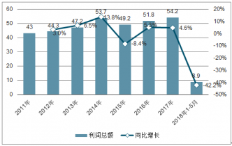 2011-2018年中國(guó)船舶配套業(yè)利潤(rùn)及增長(zhǎng)