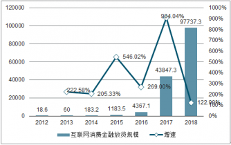 2012-2018年中國互聯(lián)網(wǎng)消費金融放貸規(guī)模