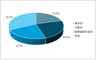 在全球,按照潤滑油添加劑的功能分布來看,分散劑、黏度指數(shù)改進(jìn)劑、清凈劑是較常使用的 3 大功能劑,合計(jì)占潤滑油添加劑總需求量的 65-70%左右。其余添加劑中,抗磨劑占 6-7%,抗氧劑及摩擦改進(jìn)劑各占4-5%,乳化劑占 3-4%,其他添加劑合計(jì)占需求量的 11-12%。