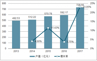 2013年至2017年中國(guó)耳機(jī)行業(yè)產(chǎn)值