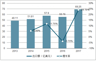 2013年至2017年中國(guó)耳機(jī)出口額