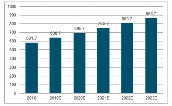 2018-2023年中國污泥處理處置市場規(guī)模預測(億元)