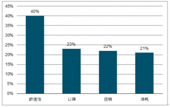近年來,在消費升級趨勢下,汽車代步屬性逐步弱化。消費者最終準備購買汽車時,汽車的舒適性成為消費者購買時關(guān)注的第.一屬性,而汽車的口碑、促銷和油耗等關(guān)注度僅有20%左右。