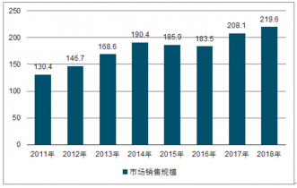 2011-2018中國(guó)巧克力市場(chǎng)銷售規(guī)模統(tǒng)計(jì)情況
