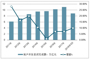 2011-2018年1-9月中國房地產(chǎn)開發(fā)投資及增速走勢