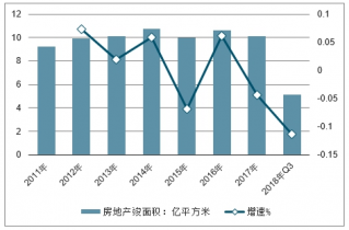 2011-2018年1-9月中國房地產(chǎn)竣工面積及增速走勢
