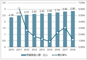 2010-2018年中國(guó)母嬰家庭人群及增長(zhǎng)走勢(shì)